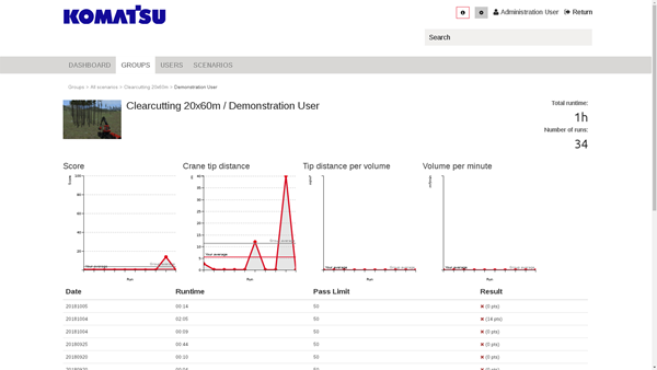 O software para forwarder inclui uma simulação de alta fidelidade do forwarder Komatsu Forest 855 com grua 130F e 165F. Carregue uma sessão salva do software do harvester e carregue a madeira derrubada com o recurso Salvar e Carregar. Abaixo você encontra os cenários padrão incluídos. No entanto, pode ser criado um número ilimitado de novos exercícios com o Editor Florestal.